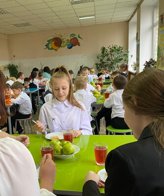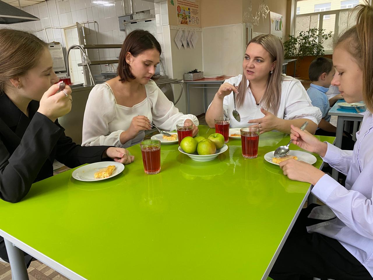 В целях улучшения качества школьного питания и взаимодействия с учениками 13.10.2025 г. в МБОУ Дубовская СШ №1 им. М.Ф.Потапова прошла акция «Завтрак с директором». В неформальной обстановке директор школы Шляхта Ю.А. и учащиеся 10 класса Джураева Виктория, Костенко Анастасия, учащаяся 6А класса Прищепа Ульяна обсудили вопросы питания обучающихся, поделились своими идеями, направленными на популяризацию питания в школьной столовой.